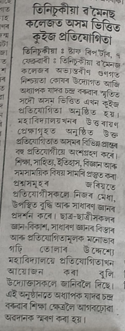Title: Prof. Jadab Chandra Barua Memorial All Assam Open Quiz Competition